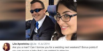 3 250 Ella pidió un acompañante para una boda por Twitter y, años después, se terminaron casando En 2014, Llia Apostolou se encontraba sin un acompañante para la boda de su hermana. Evidentemente, no es malo asistir solos a este tipo de... By Sara Leblanc8 años ago